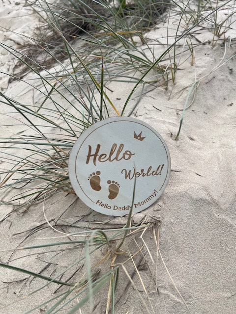 Wooden "Hello World" Birth Announcement